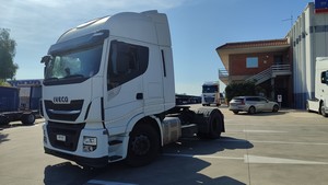 IVECO STRALIS 510 CV - Aprile 2020 Euro 6 - Km 405.376 - Spoiler fender colore cabina - Sedili anteriori pneumatici, Sedile conducente regolabile in altezza, Bracciolo conducente e passeggero, Sedile conducente riscaldabile, Appoggio lombare conducente, Chiusura centralizzata con telecomando, frigo in cabina, Radio/CD, Predisposizione per la telefonia mobile Bluetooth, Cambio automatico, Sistema lavafari, Fari fendinebbia, Luci diurne a LED, Sistema elettronico di frenata EBS, Assistente di frenata, Regolatore di velocità, Segnalazione di mantenimento corsia, Controllo della partenza in salita, Retarder, Programma elettr. di stabilità ESP